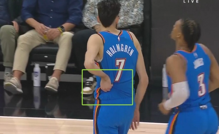 稍有不適!切特扣籃+蓋帽后捂著腰部左側(cè) 但繼續(xù)堅持出戰(zhàn)