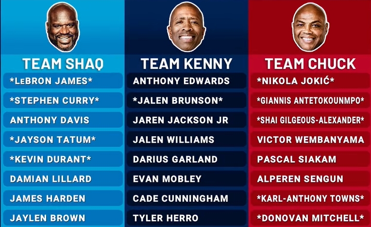 02月07日訊 TNT今日直播NBA全明星正賽選人,奧尼爾、肯尼和巴克利分成三隊(duì)進(jìn)行蛇形選人,不區(qū)分首發(fā)和替補(bǔ)。