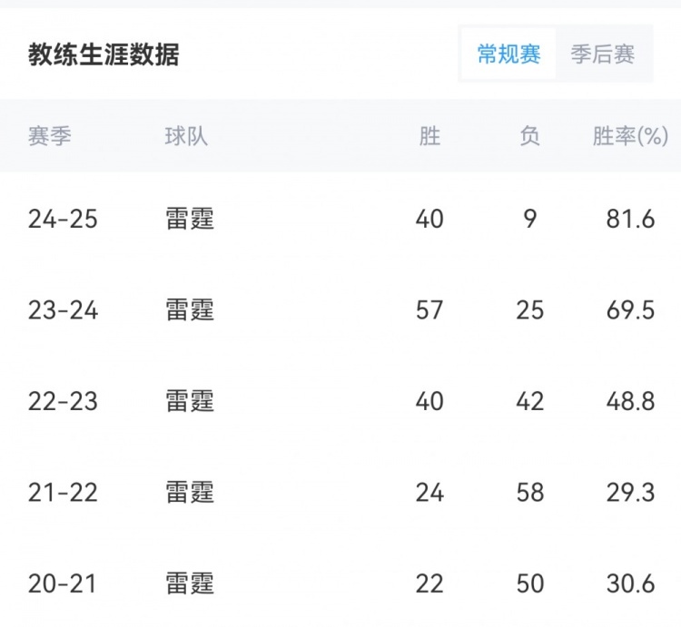 相關(guān)新聞>>>頭兩季僅30%勝率!雷霆主帥戴格諾特執(zhí)教勝率來到50%