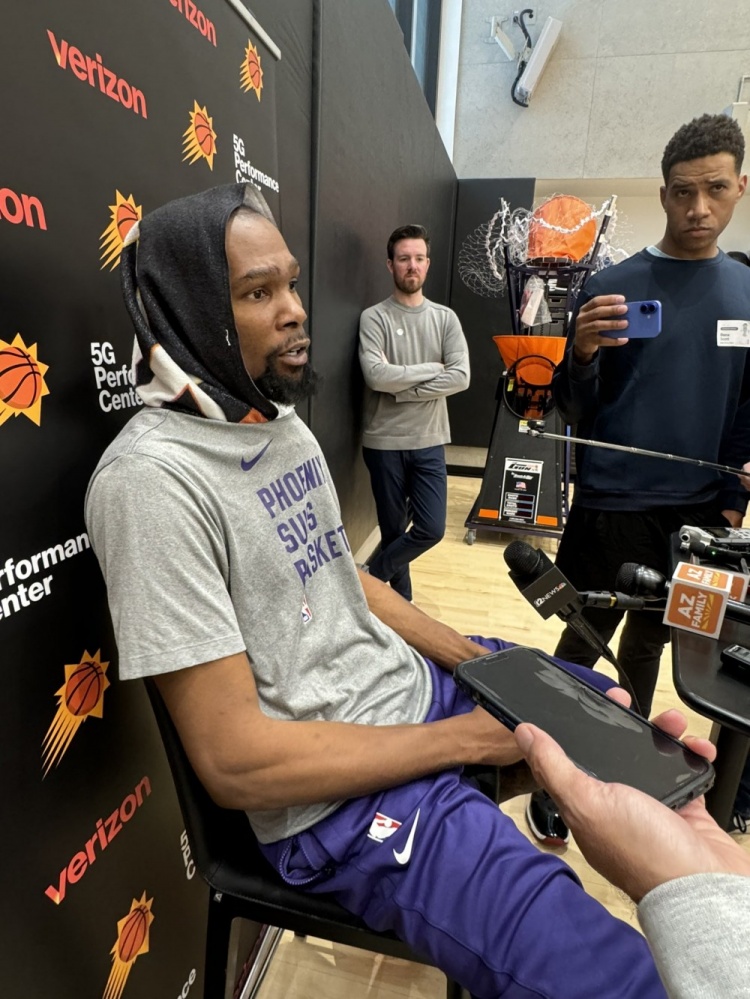 2月11日訊 今天上午,太陽球星凱文-杜蘭特在訓練結(jié)束后接受了記者采訪。