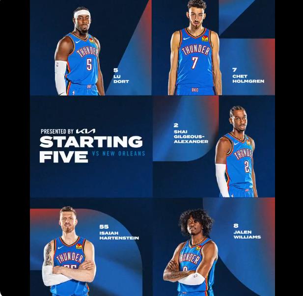 ??完全體!雷霆首發(fā):亞歷山大、多特、杰倫威、切特、哈滕