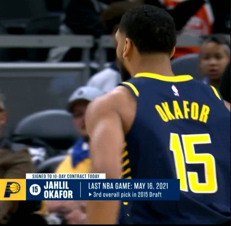 此役,2015年的探花秀賈利爾-奧卡福在時隔四年后重新回到NBA賽場,他替補(bǔ)出戰(zhàn)3分22秒,得到1籃板1助攻。