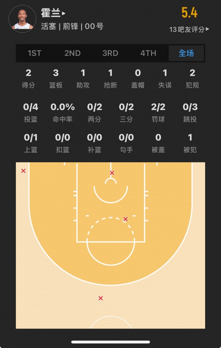 活塞5號(hào)秀 羅恩-霍蘭二世 登場(chǎng)22.6分鐘