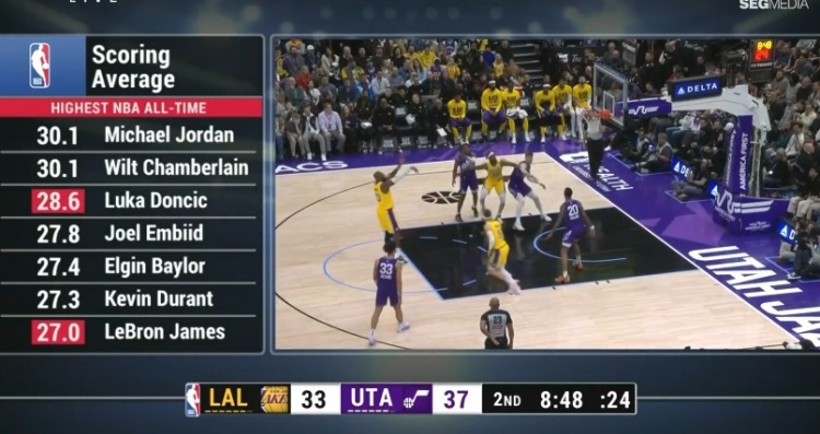 歷史生涯場均得分榜前7(27+):1、喬丹 30.1分張伯倫 30.1分3、東契奇 28.6分4、恩比德 27.8分5、埃爾金-貝勒 27.4分6、杜蘭特 27.3分7、詹姆斯 27分 標簽: 籃球 NBA 湖人 詹姆斯 東契奇 恩比德 杜蘭特