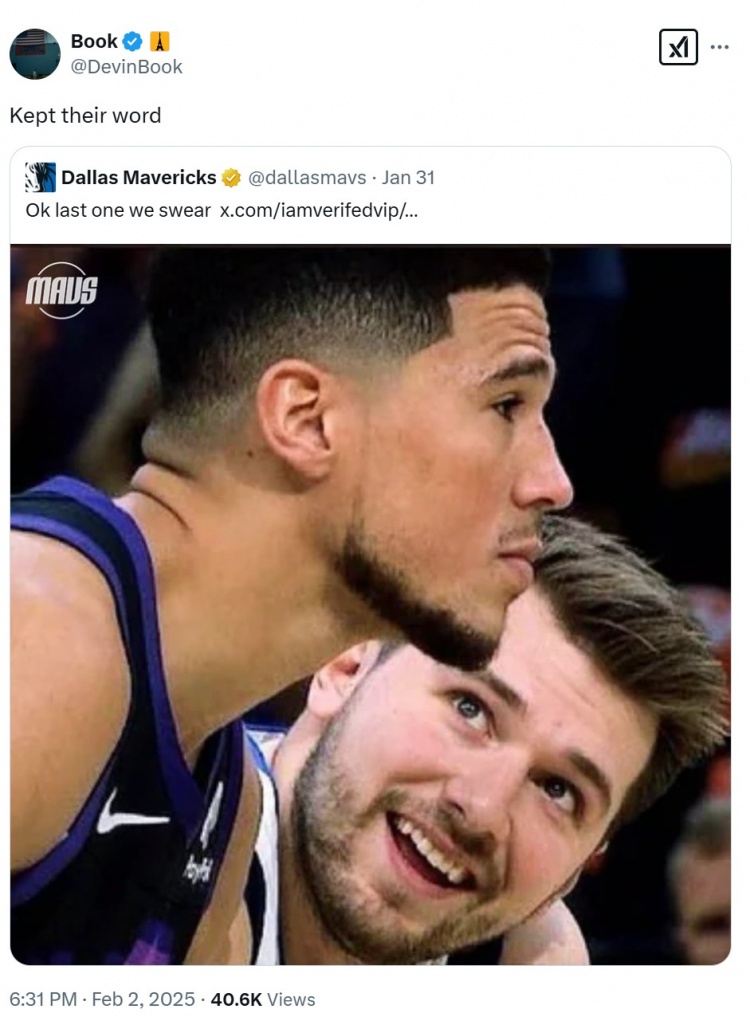獨(dú)行俠官方昨天說最后一次用東契奇凝望照!布克回懟:挺遵守諾言