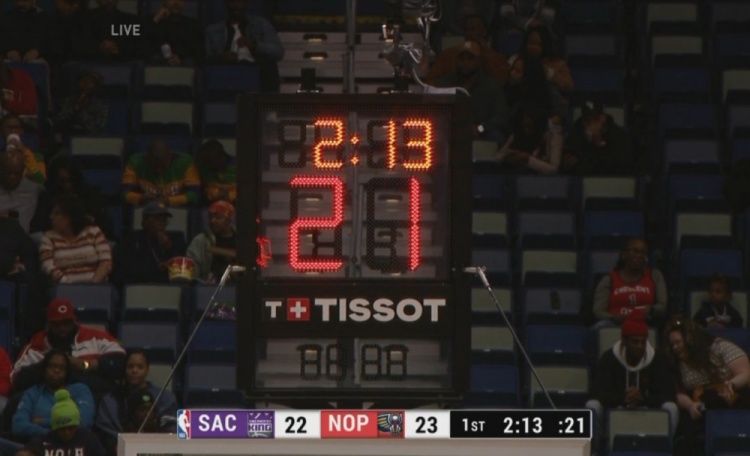 怎么還沒修好...鵜鶘主場計時器壞了&工作人員甚至搬了新的出來!