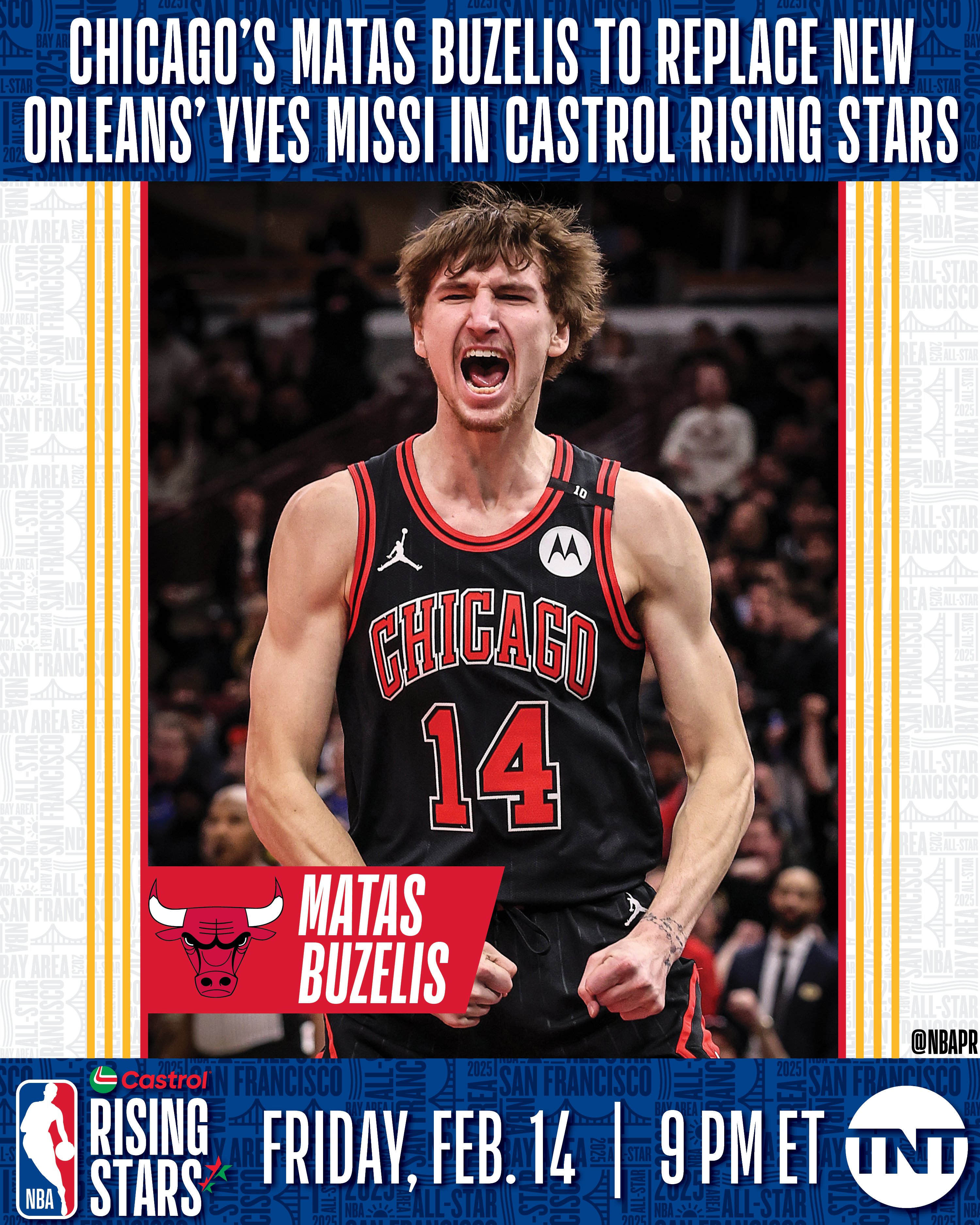 官方:公牛前鋒布澤利斯將代替受傷鵜鶘中鋒米西 出戰(zhàn)新秀挑戰(zhàn)賽