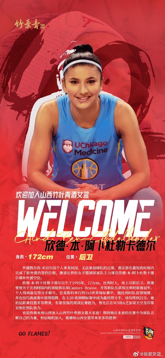 山西女籃官方介紹:外援凱爾西-米切爾因個人事務(wù)回國,無法參加球隊的比賽,俱樂部在最短的時間內(nèi)完成了新外援的簽約注冊,邀請比利時女子籃球國家隊主力球員欣德-本-阿卜杜勒卡德爾填補(bǔ)外援空位。