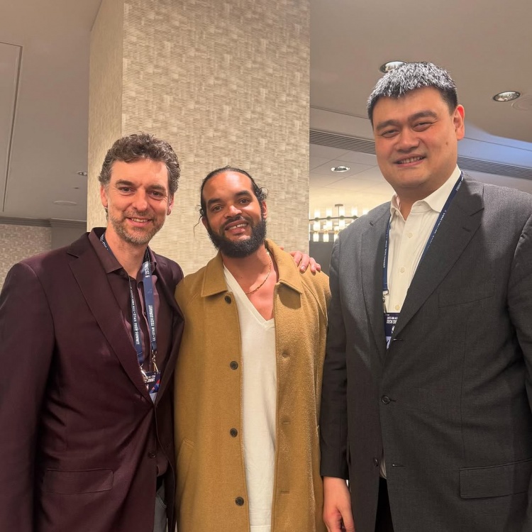 齊聚舊金山全明星!諾阿曬與姚明大加合照:與兩位全球大使在一起