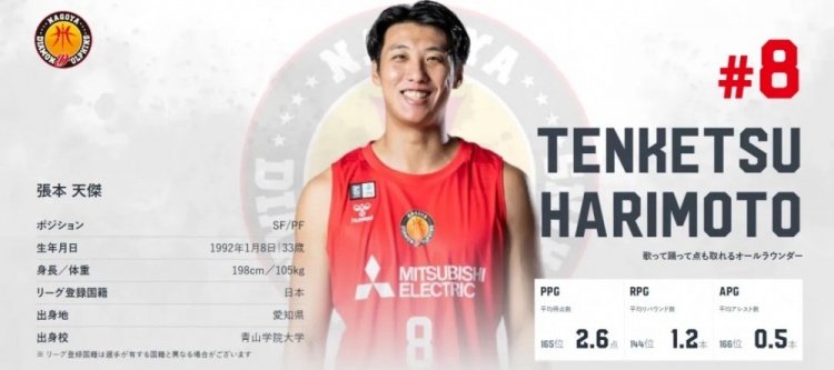 這里提一下張本天杰,他因?yàn)槭?6歲以前歸化,不受歸化政策影響,另外我們國內(nèi)的資料都表示出生在沈陽,不知道B聯(lián)賽為什么把他的出生地放在了愛知縣