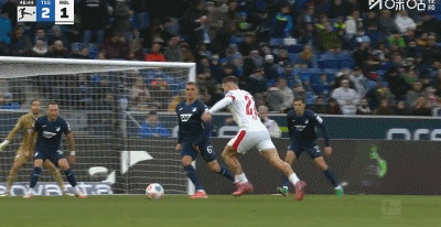 第9分鐘,迪奧曼德扣球后低射破門,萊比錫1-0領(lǐng)先