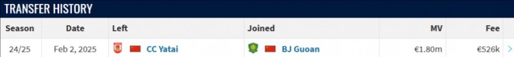 塞爾吉尼奧現(xiàn)年29歲,2020年加盟長(zhǎng)春亞泰,本賽季轉(zhuǎn)會(huì)北京國(guó)安,根據(jù)德轉(zhuǎn)信息,塞爾吉尼奧此次轉(zhuǎn)會(huì)費(fèi)為52.6萬(wàn)歐。