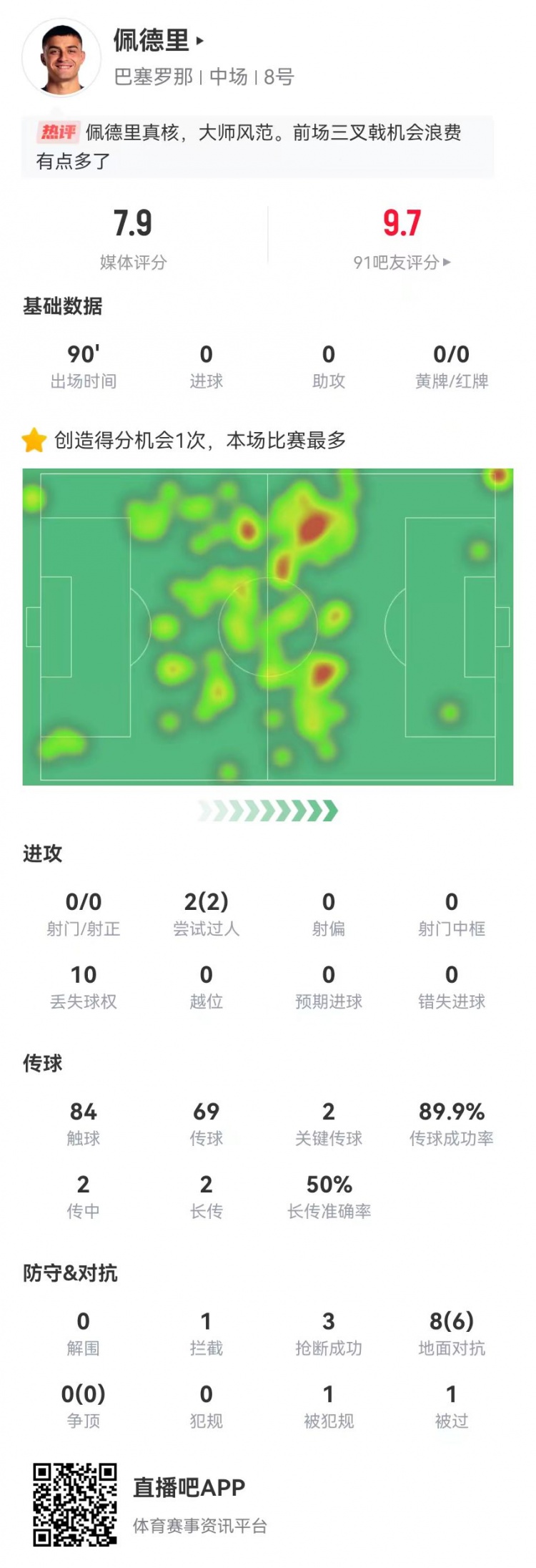 2月18日訊 巴薩在本輪西甲1-0險(xiǎn)勝巴列卡諾,佩德里當(dāng)選全場最佳球員,本場數(shù)據(jù)如下: