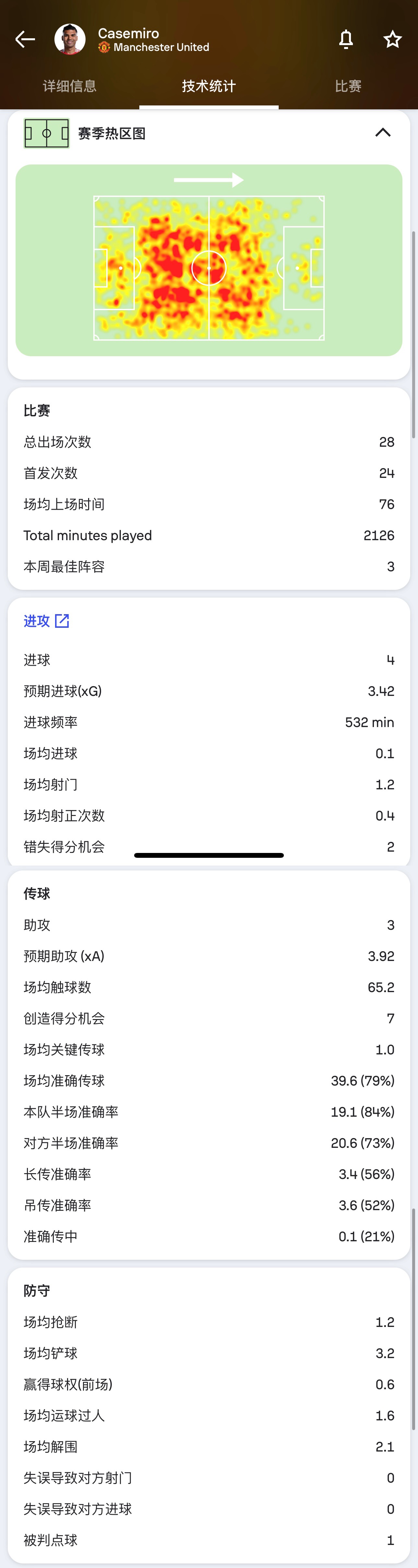 卡塞米羅22/23賽季英超數(shù)據(jù)↓