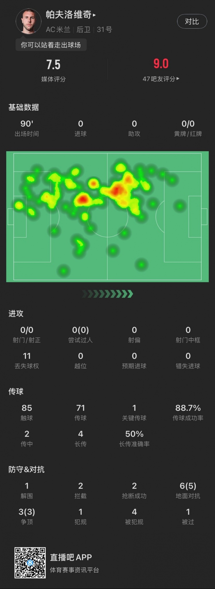 2月19日訊 在剛剛結束的歐冠淘汰賽階段附加賽中,米蘭1-1戰(zhàn)平費耶諾德,總比分1-2出局。本場比賽,帕夫洛維奇發(fā)揮出色,獲評7.5分。