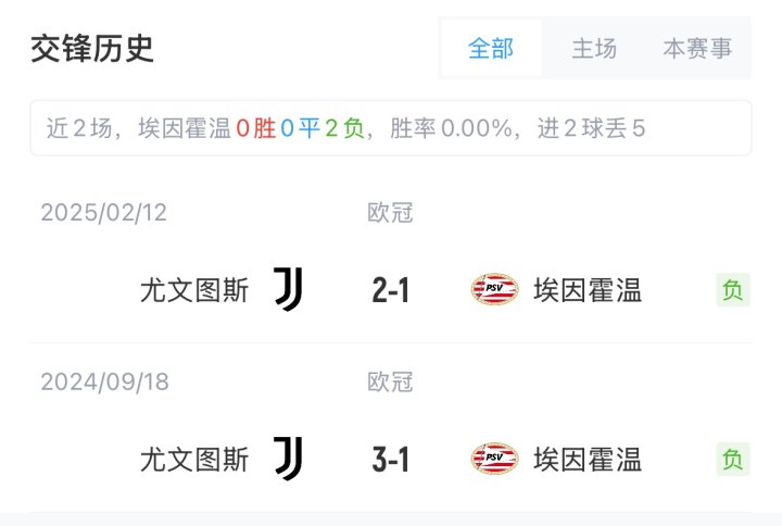 02月20日訊 在剛剛結(jié)束的歐冠淘汰賽附加賽中,尤文兩回合總比分3-4不敵埃因霍溫慘遭淘汰,巧合的是兩隊在之前的聯(lián)賽階段就有過交手,當時尤文曾3-1輕取對手,附加賽的首回合尤文也以2-1取勝搶占先機,但卻在最關(guān)鍵的第二回合敗北。