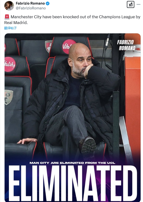 故意的還是?羅馬諾第86分鐘發(fā)文:曼城歐冠被皇馬淘汰