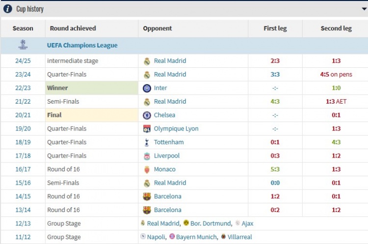 根據(jù)德轉(zhuǎn)統(tǒng)計,自1992年歐冠改制后,曼城參加了14次歐冠,本賽季是時隔11個賽季之后再度無緣晉級16強。