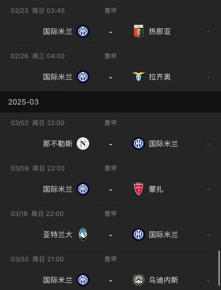 國米未來賽程↓