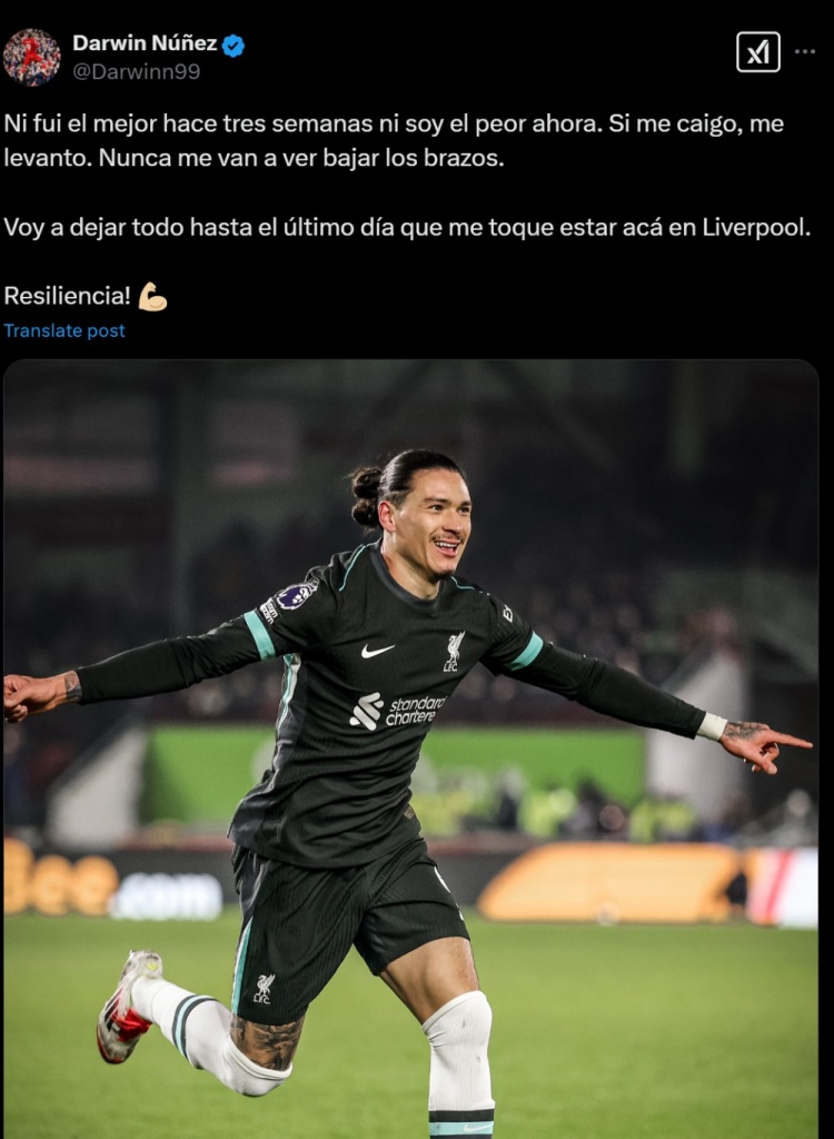努涅斯寫(xiě)道:“相比于三周前,我現(xiàn)在既不在最佳狀態(tài),也不是最差狀態(tài)。如果跌倒了,我會(huì)爬起來(lái)。你永遠(yuǎn)不會(huì)看到我放棄。我會(huì)全力以赴,直到在利物浦的最后一天。要堅(jiān)韌不拔!????????”