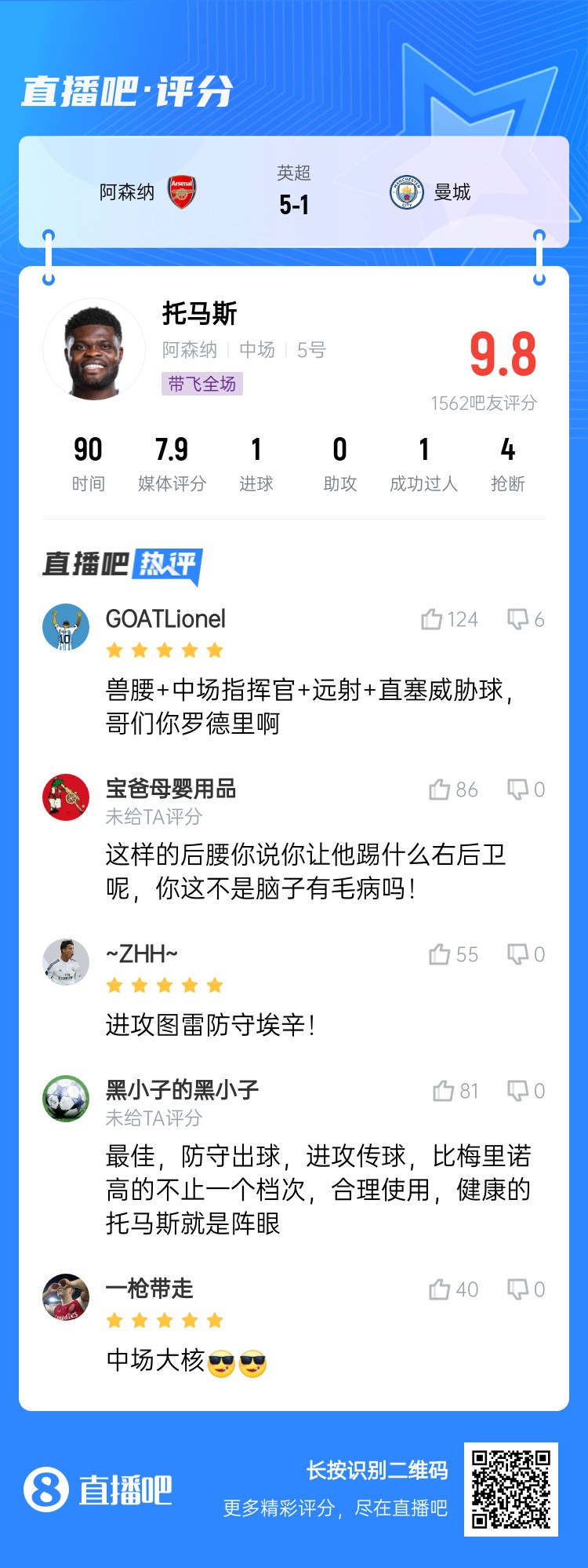 年輕5歲該多好!吧友給托馬斯打9.8分:獸腰+指揮官+遠(yuǎn)射+直塞
