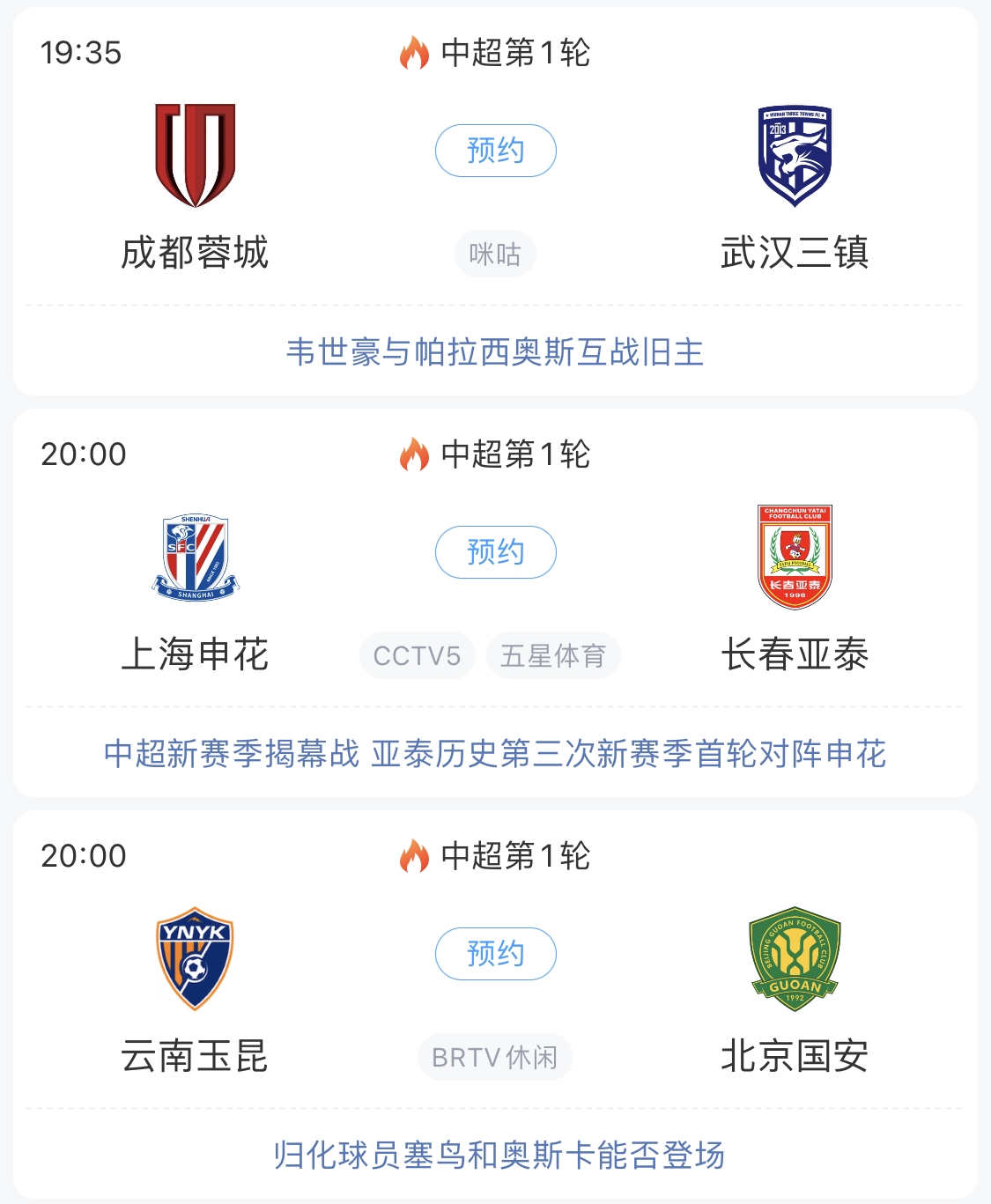 今晚,2025賽季中超聯(lián)賽就將拉開帷幕!上海申花承辦開幕式,主場迎戰(zhàn)長春亞泰;球市火爆的成都蓉城迎戰(zhàn)武漢三鎮(zhèn);中超新軍云南玉昆坐鎮(zhèn)玉溪高原主場迎戰(zhàn)國安,萬眾矚目的塞鳥和奧古樓能否亮相?
