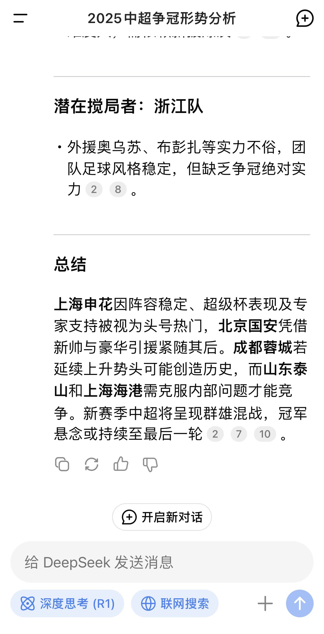 DeekSeek預(yù)測:申花是冠軍