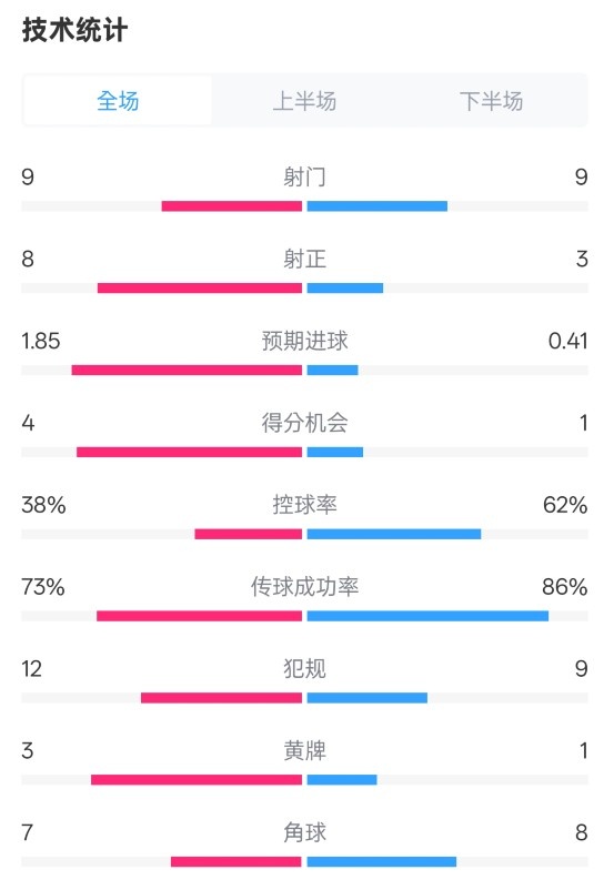 全場比賽數(shù)據(jù)如下(曼聯(lián)在后):