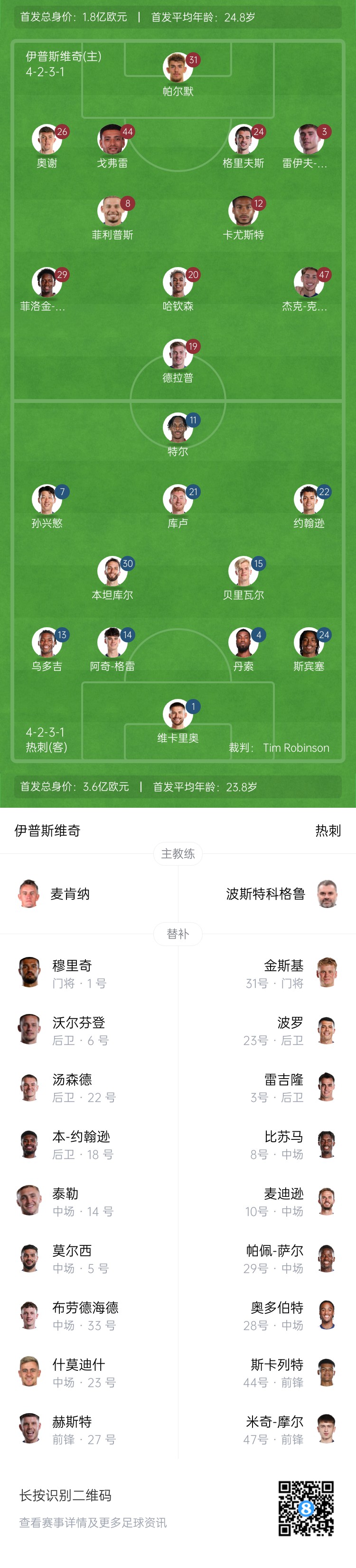 賽前熱刺25輪30分排名第12位,伊普斯維奇25輪17分排名第18位,落后保級(jí)區(qū)2分。