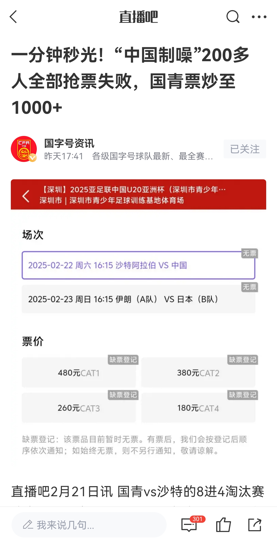 陸洋表示:離開賽15分鐘,對(duì)面看臺(tái)是這樣的,最近一個(gè)星期有兩位數(shù)的球迷在我這兒留言說搶不到票,所以替大家問一句“票哪兒去了??”