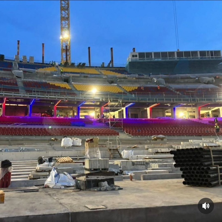 巴薩翻新諾坎普球場,相關(guān)工程正在進行中,博主曬出施工照片,確認(rèn)諾坎普球場仍在測試第一層看臺的照明系統(tǒng)。