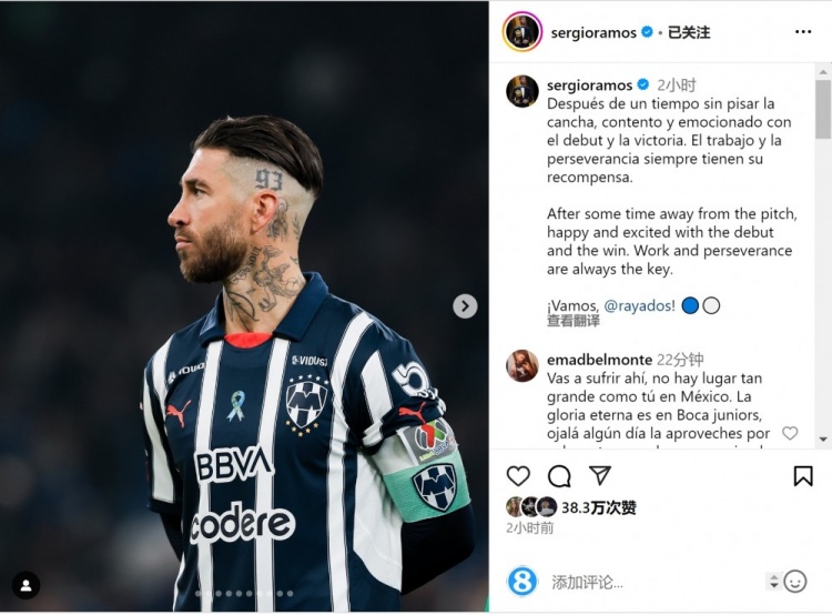 拉莫斯社媒曬出自己的照片,并寫道:“在一段時間沒有踏上球場之后,我為自己的首秀以及球隊的勝利感到高興和激動,努力和堅持總會得到回報?!?/p>