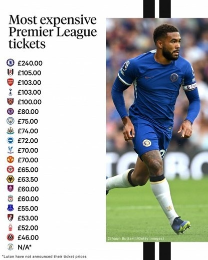 [4] TA列英超球隊票價排名:切爾西240磅最貴,頭尾相差五倍多. . 2023年8月24日.