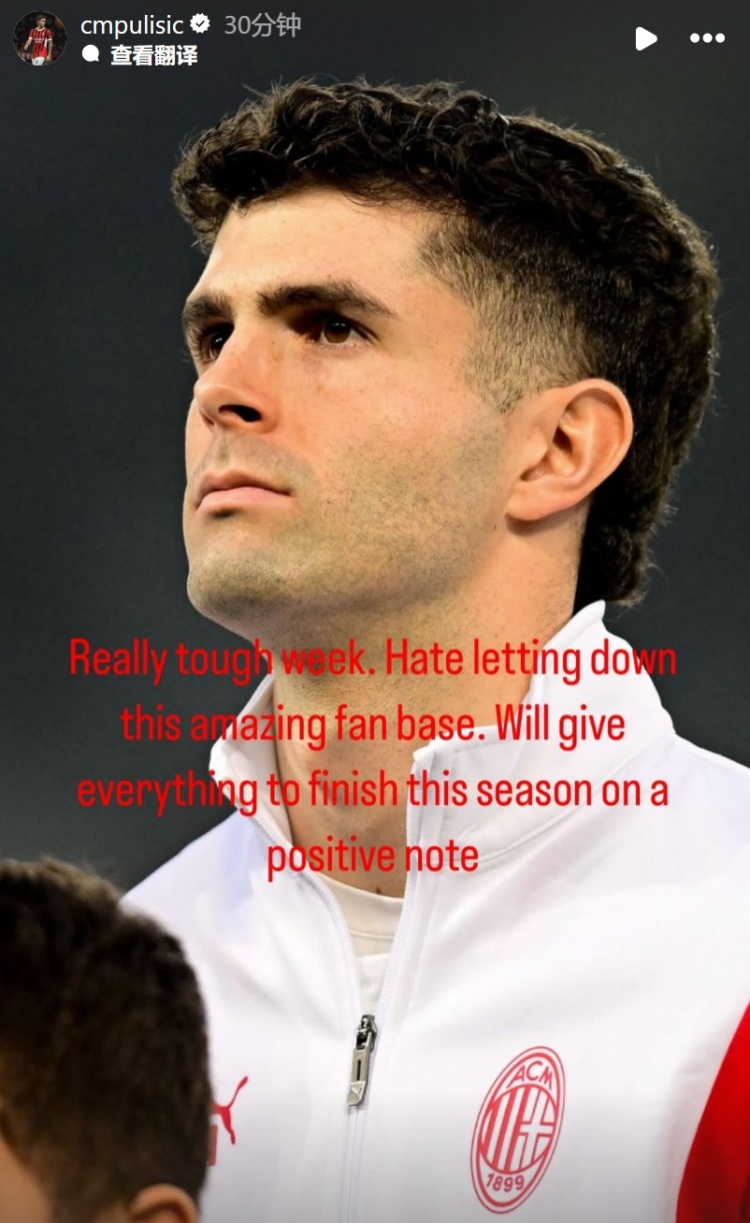 普利西奇在個人社媒也發(fā)文致歉并鼓勵球隊,寫道:“這真的是艱難的一周,很厭惡讓我們如此出色的球迷們失望,我們會為了以一個積極的結果結束本賽季而付出一切。”