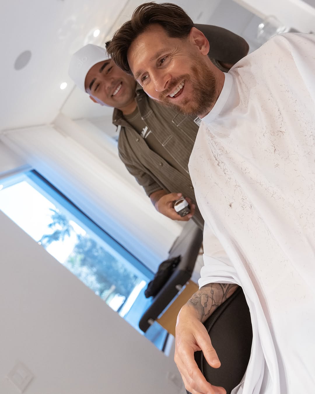 今日發(fā)型師曬照,為梅西修了修頭發(fā)。