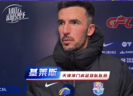 2月24日訊 中超聯(lián)賽首輪,天津津門虎主場2-2絕平梅州客家。新外援基萊斯罰失點球后雙響,幫助球隊取得一場平局。在接受《體壇新視野》采訪時,基萊斯談到了自己的感受。