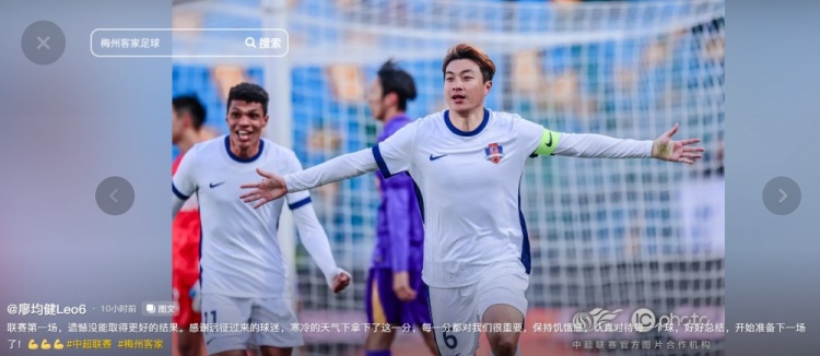 2月24日訊 中超聯(lián)賽首輪,梅州客家客場(chǎng)2-2遭天津津門虎絕平。賽后,梅州客家隊(duì)長(zhǎng)廖均健在個(gè)人社交媒體中談到了感受。