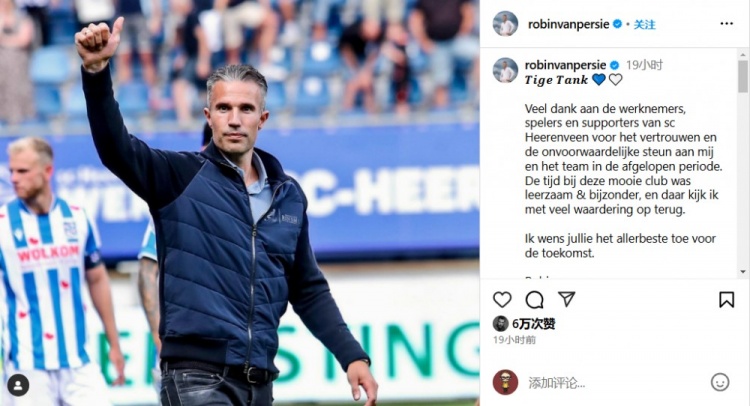 2月24日訊 范佩西今天在Instagram發(fā)文,告別了海倫芬俱樂(lè)部。