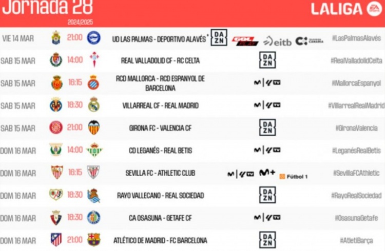 2月25日訊 近日,西甲官網(wǎng)公布了聯(lián)賽第28輪的比賽時(shí)間,本輪將迎來(lái)馬競(jìng)與巴薩之間的強(qiáng)強(qiáng)對(duì)話。