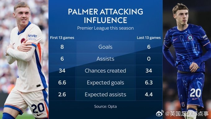天空體育:帕爾默在過(guò)去13場(chǎng)英超比賽中創(chuàng)造了34次機(jī)會(huì),預(yù)期助攻為4.4,但實(shí)際沒(méi)有收獲一個(gè)助攻???? 標(biāo)簽: 足球 英超 切爾西 轉(zhuǎn)載