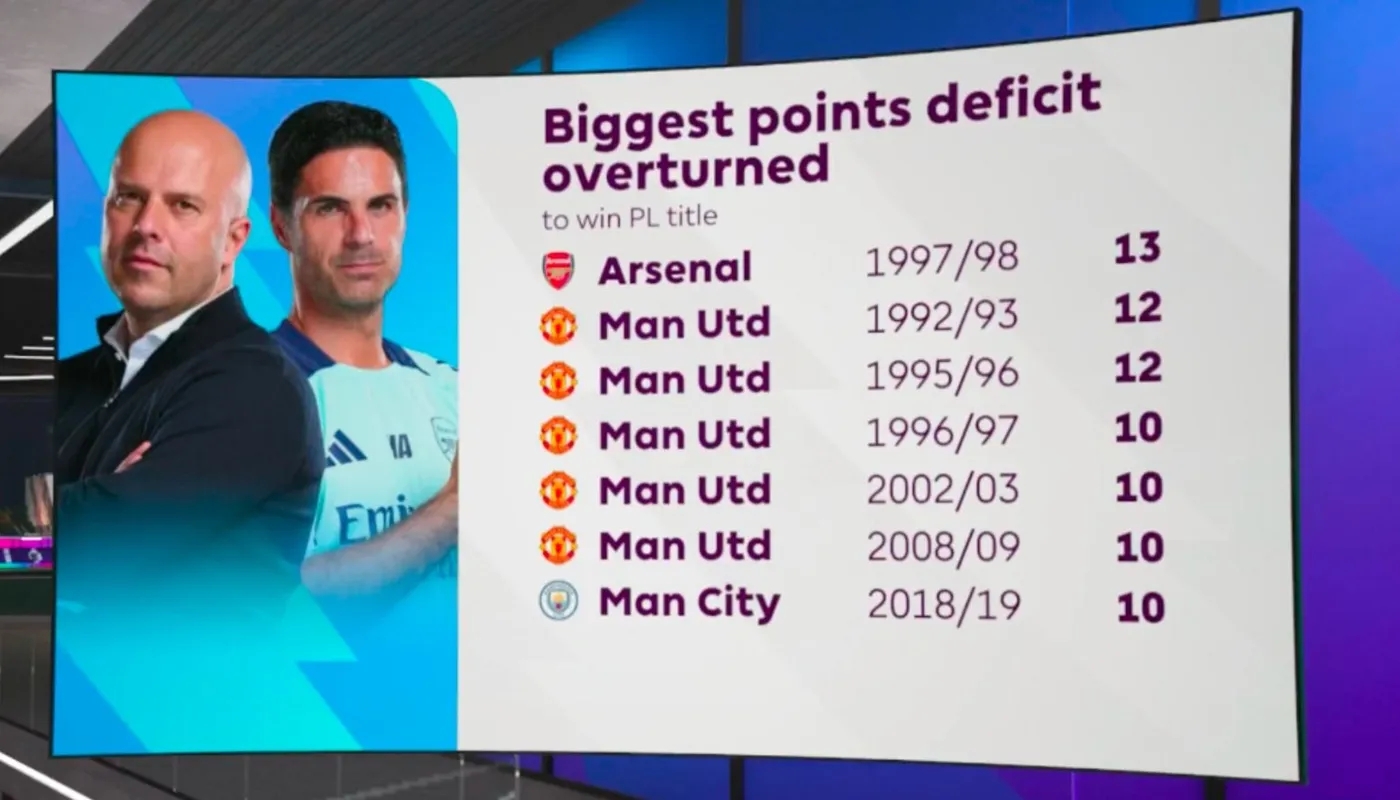 有先例!97/98賽季阿森納落后13分翻盤奪冠,但...
