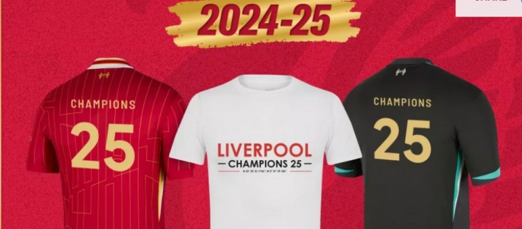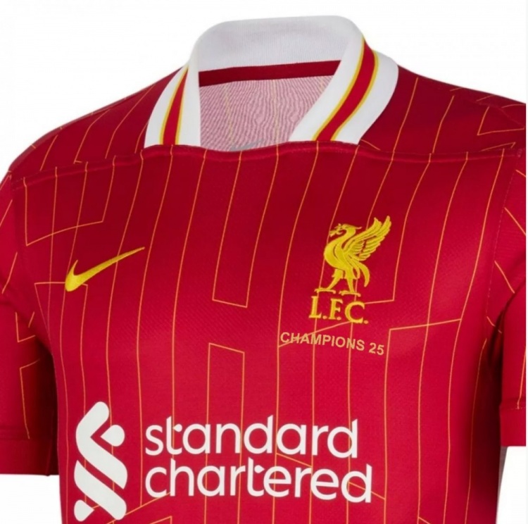 這款t恤成人版售價(jià)9.99英鎊,青少年版售價(jià)7.99英鎊,現(xiàn)在已經(jīng)可以購買了。利物浦球迷還可以訂購印有“25”字樣的球衣復(fù)制品。它的背面有冠軍和25字樣,而俱樂部的logo周圍也繡著“冠軍 25”字樣。
