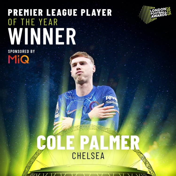2月28日訊 倫敦足球獎(jiǎng)官方宣布,切爾西中場帕爾默當(dāng)選倫敦足球獎(jiǎng)年度最佳球員。