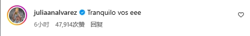 阿爾瓦雷斯也給德保羅評論道:“你冷靜點。”小西蒙尼也出現(xiàn)在評論區(qū),他寫道:“哎喲,不愧是帥哥啊,媽呀呀呀????????”