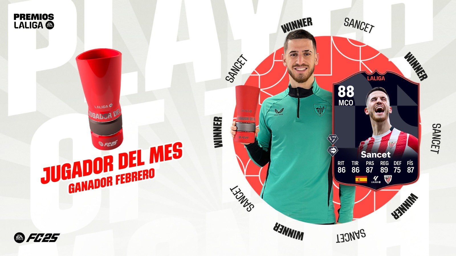 3月1日訊 西甲官方宣布,畢巴中場(chǎng)桑謝特當(dāng)選聯(lián)賽2月最佳球員。