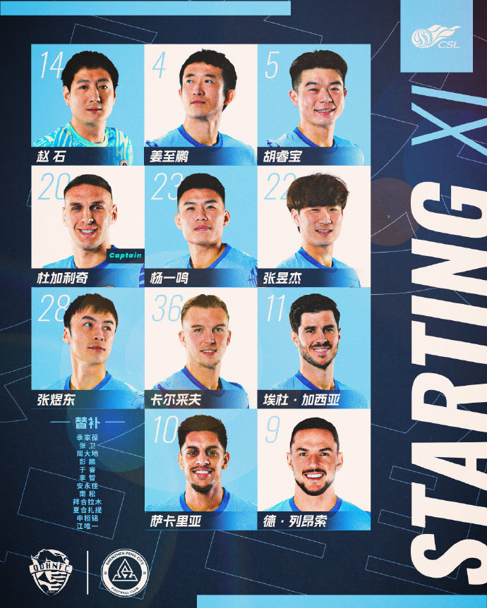 03月01日訊 15:30中超第二輪,青島海牛對(duì)陣深圳新鵬城。賽前雙方公布本場(chǎng)首發(fā)。