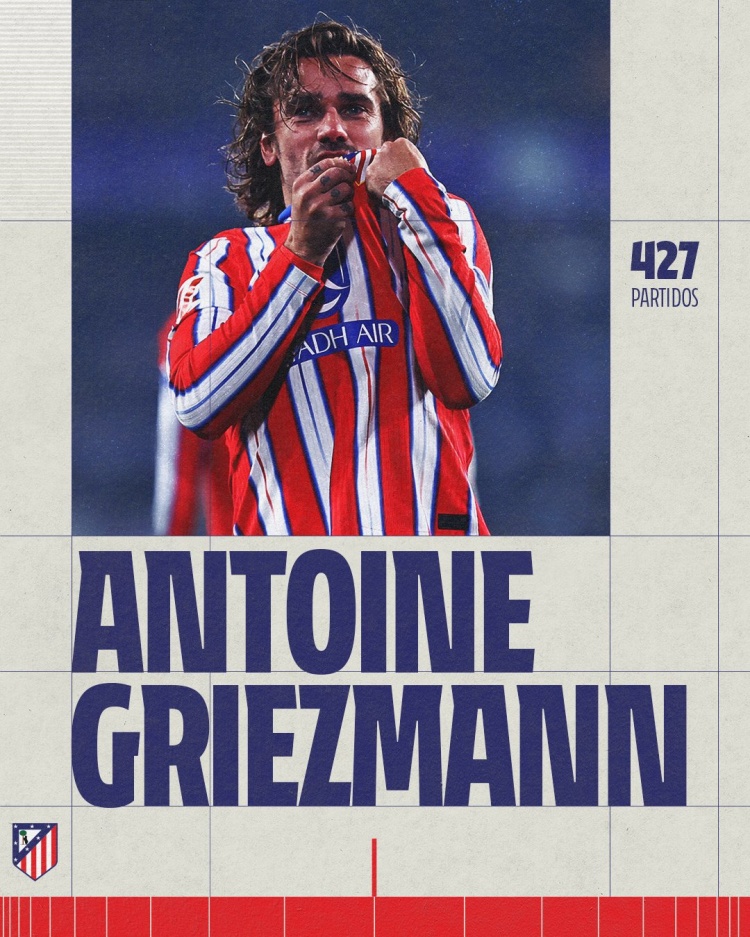 這場比賽是格列茲曼代表馬競在各項賽事中出戰(zhàn)的第427場比賽,他追平了薩烏爾,并列馬競隊史出場次數(shù)榜第8名。