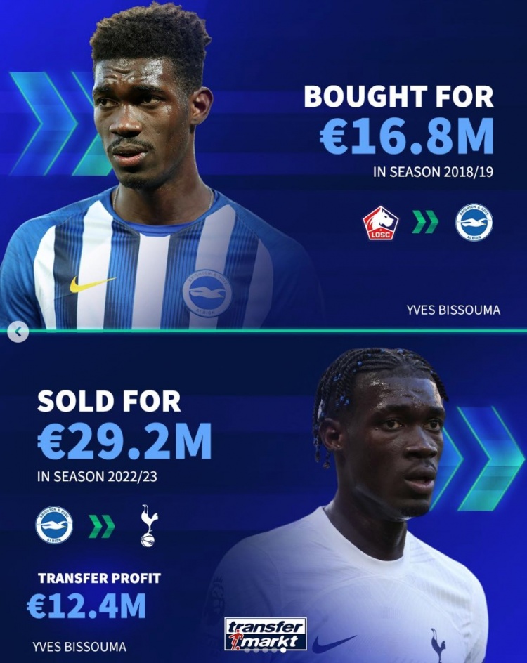 3月3日訊 《轉(zhuǎn)會(huì)市場(chǎng)》統(tǒng)計(jì)了布萊頓近年的5筆低買高賣轉(zhuǎn)會(huì)操作,共計(jì)凈賺超過(guò)2億歐元。