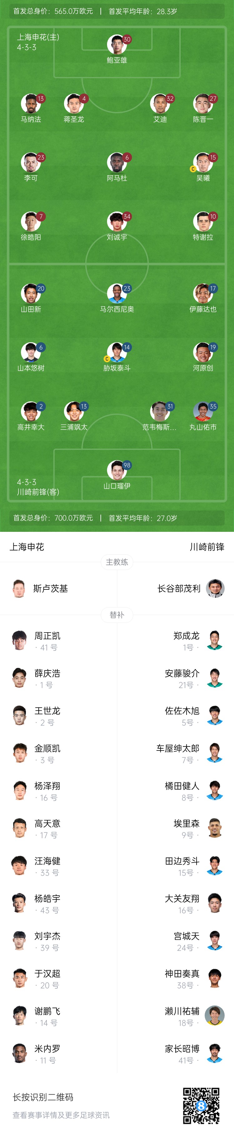 上海申花在聯(lián)賽階段排名第7,川崎前鋒在聯(lián)賽階段排名第2,兩隊本賽季首次交鋒申花2-0戰(zhàn)勝川崎。18歲國青小將劉誠宇生涯首次為申花成年隊首發(fā),上周他才剛完成中超首秀。