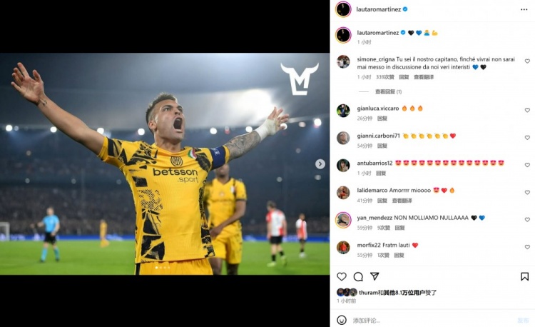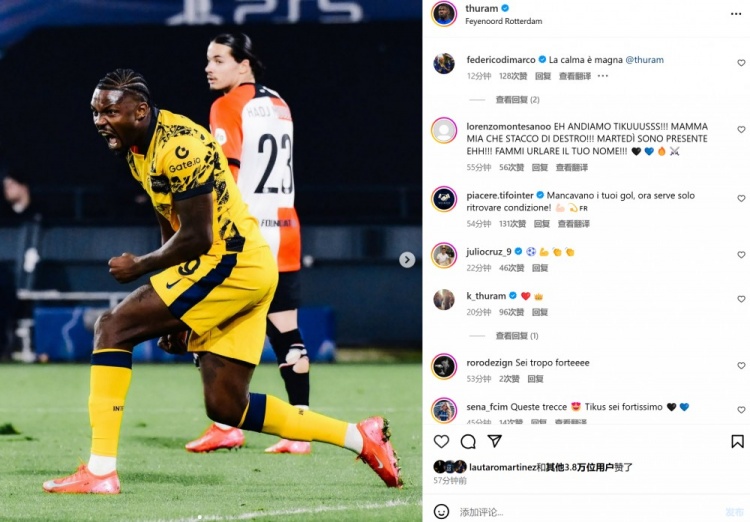 本場(chǎng)比賽勞塔羅與小圖拉姆雙雙破門,賽后兩人也分別在個(gè)人社媒曬出本場(chǎng)進(jìn)球后怒吼慶祝的照片。